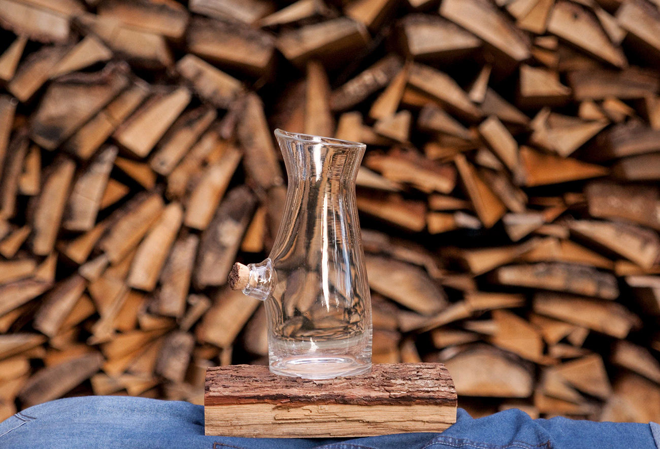 Glass bottle made it in France by glassblowing traditional style with the Corning Museum of Glass NY. Visite
