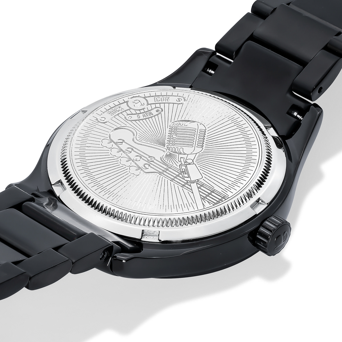 Brazalete macizo de acero 316L PVD negro. Corona dentada. Movimiento japonés. Cristal mineral. 5 ATM.